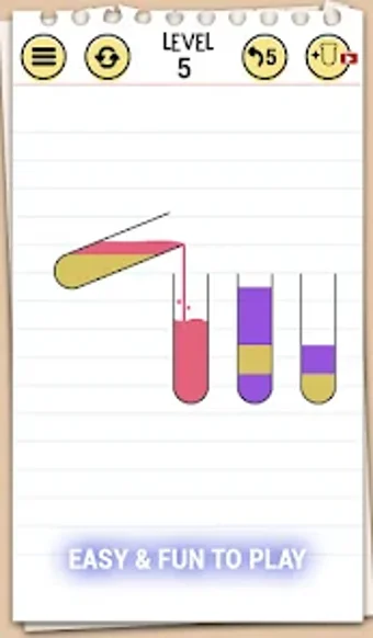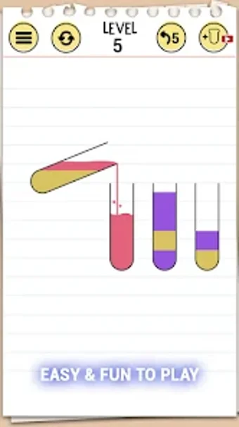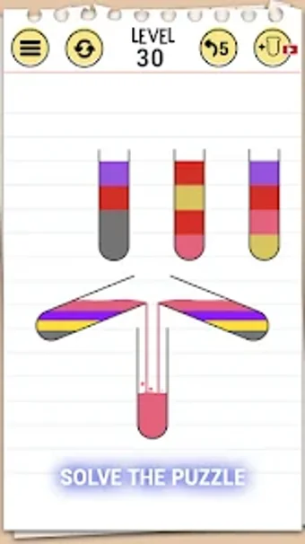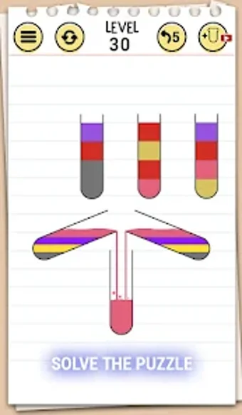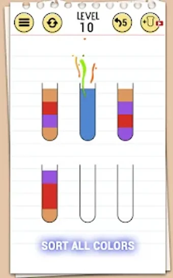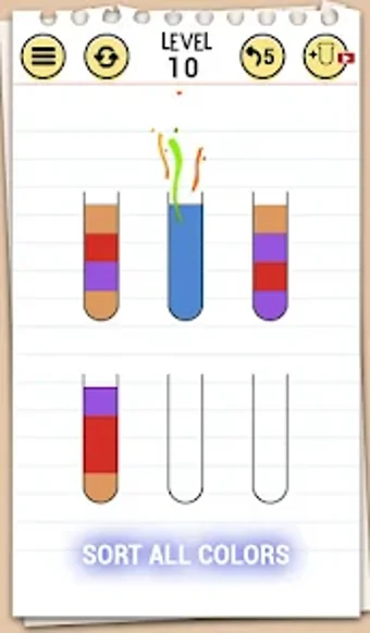 WaterPuz是由SuperPuzzle Studio开发的一款免费的益智游戏,适用于Android设备。这款游戏的目标是将彩色水倒入玻璃杯中,直到所有颜色都在同一个玻璃杯中。规则很简单:点击任意一个玻璃杯,将水倒入另一个玻璃杯中,但只有当两个玻璃杯的颜色相同且有足够的空间时才能倒水。